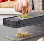 Equipped with multiple interchangeable stainless steel blades, it ensures precise cutting every time. The built-in container collects your chopped ingredients neatly, while the draining basket allows you to rinse and strain them instantly. With non-slip base and hand guard for safe operation, this slicer offers both convenience and safety in one smart design.