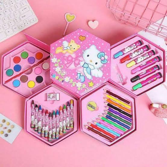 This art box is specially designed for children who love to explore colors and express creativity. Each piece fits neatly into a sturdy, portable case, making it easy to organize, carry, and store. Whether your child is creating beautiful flowers, landscapes, characters, or handmade greeting cards β this kit has it all!