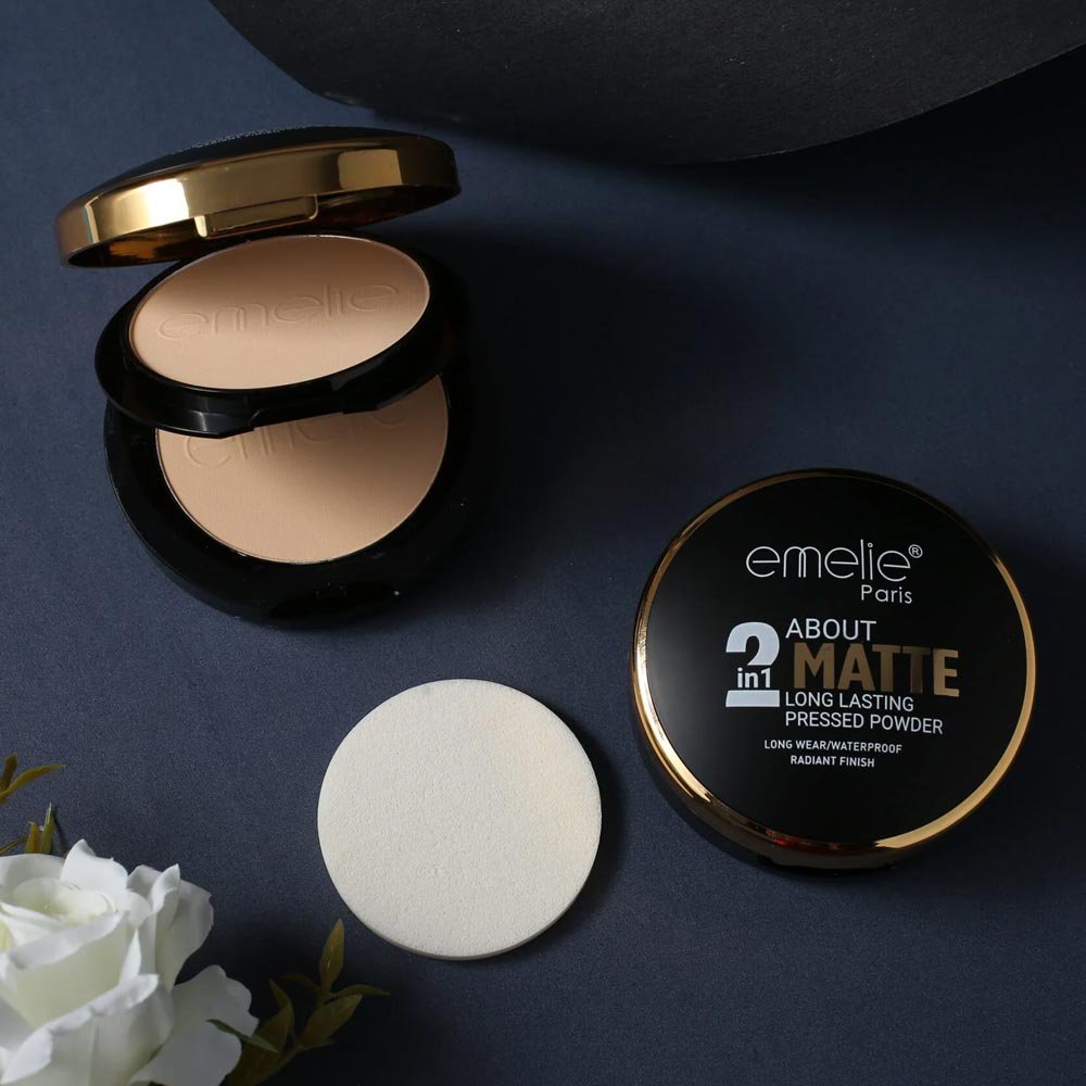 ✨ Emelie 2-in-1 Matte Long Lasting Pressed Powder – Dual Action Setting Powder + Foundation