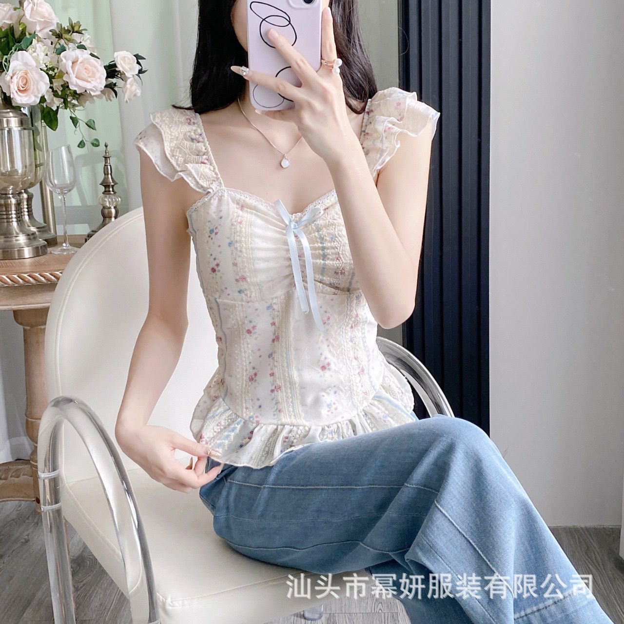 - Ruffle shoulder sleeves