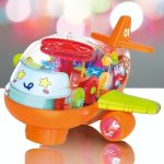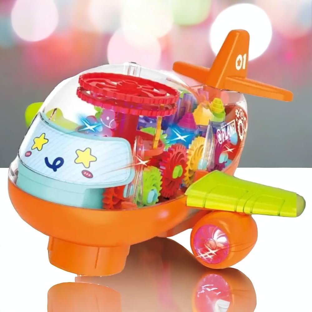 This colorful transparent airplane toy features rotating gears, flashing lights, and fun music, making it an exciting and educational toy for young kids. The see-through body lets children watch the gears move, helping develop their curiosity and understanding of motion.