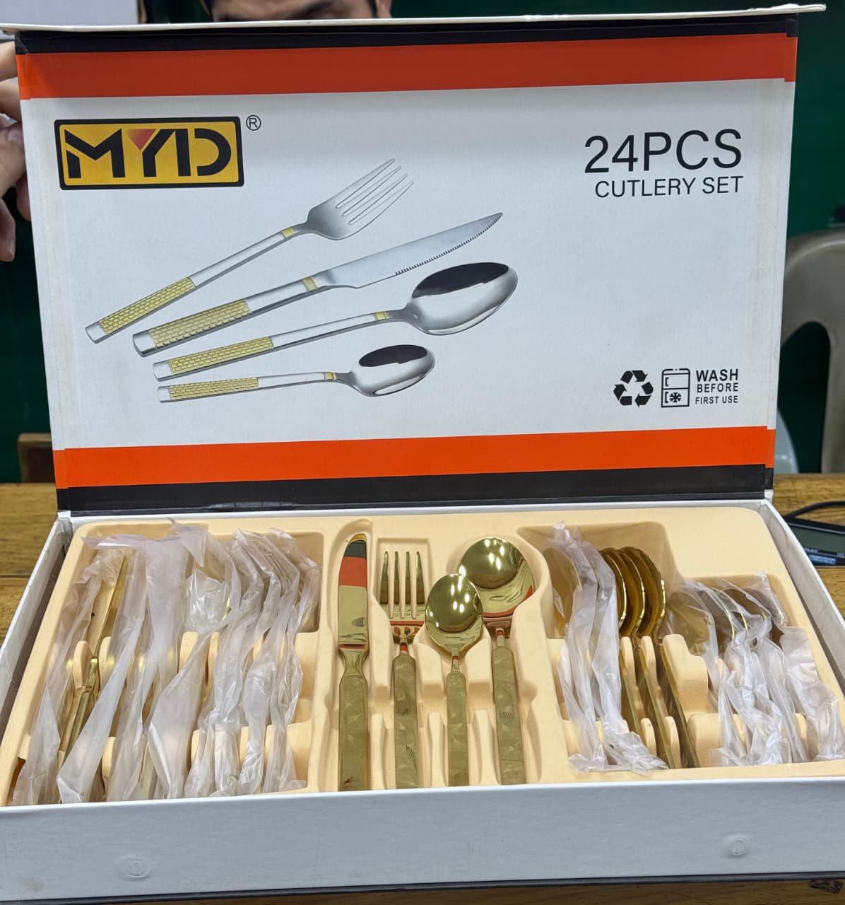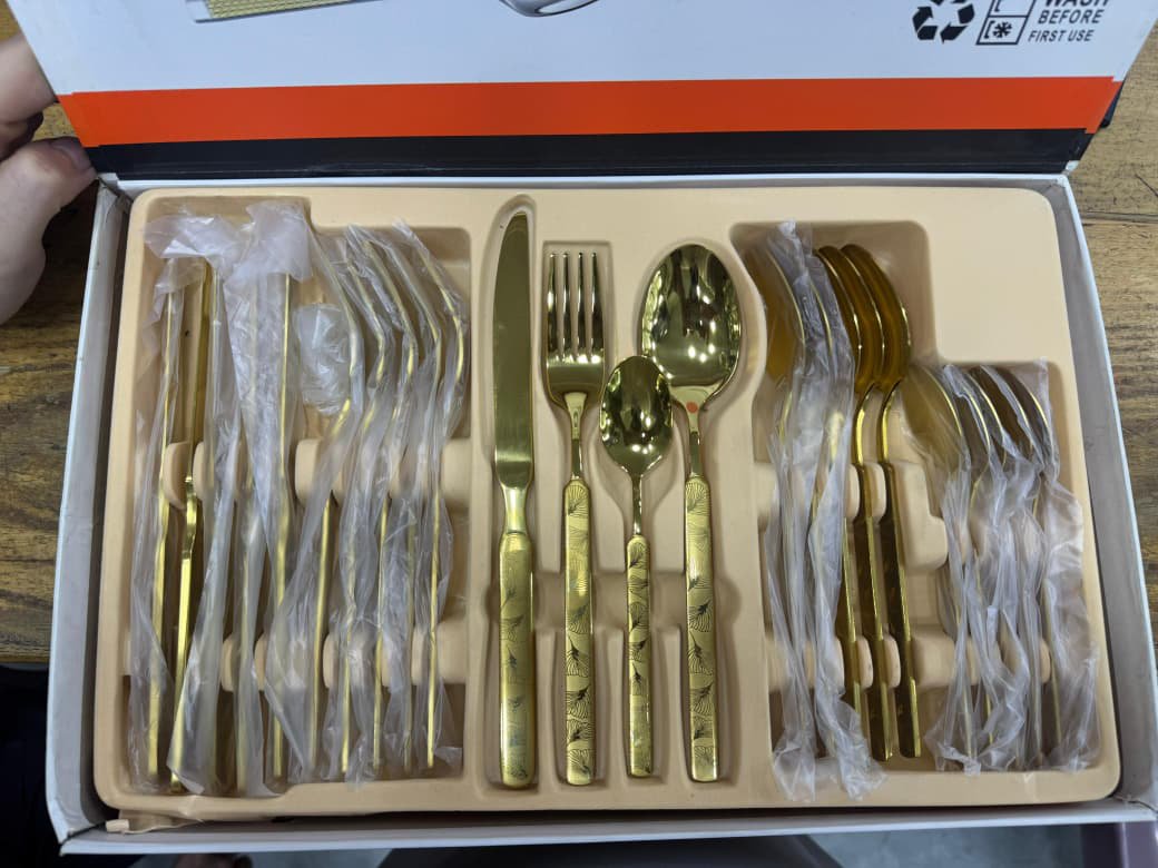 Elevate your dining experience with the MYD 24-Piece Gold-Plated Stainless Steel Cutlery Set, a perfect blend of luxury, durability, and functionality. Designed to serve six people, this premium cutlery set adds elegance to any dining table with its shimmering gold finish and high-quality stainless steel construction. Whether for daily meals or special occasions, MYD ensures your table setting always looks sophisticated and complete.