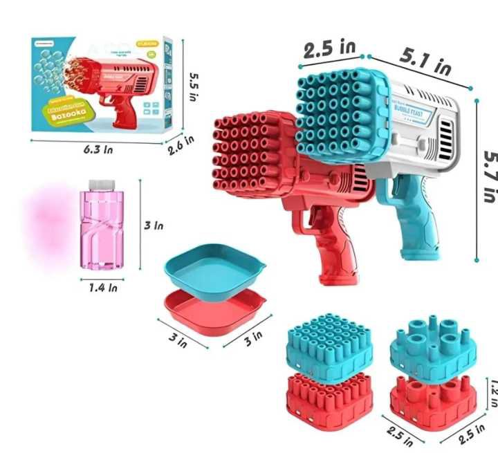 Designed like a space rocket and bazooka, this battery-operated bubble machine produces a flurry of colorful bubbles at the press of a button. Featuring 8 to 36 bubble holes, it delivers a high-volume bubble blast β perfect for pool parties, birthdays, outdoor fun, and summer adventures.